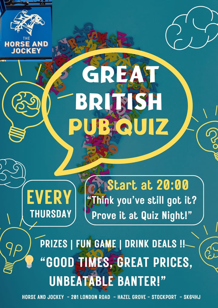 The Horse & Jockey is a fantastic community pub situated in the heart of Hazel Grove! Here we offer great value for money and are your go-to place for all things sport and big weekend entertainment. Enjoy pool tables, dart boards, and cheer on your favourite teams with your perfect pint in hand! We canβt wait to see you soon!